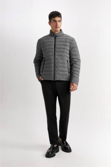 Slim Fit Dar Kesim Dik Yaka Astarlı Fermuarlı Cepli Kışlık Mont