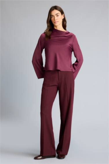 Regular Fıt Degaje Yaka Saten Uzun Kollu Bluz