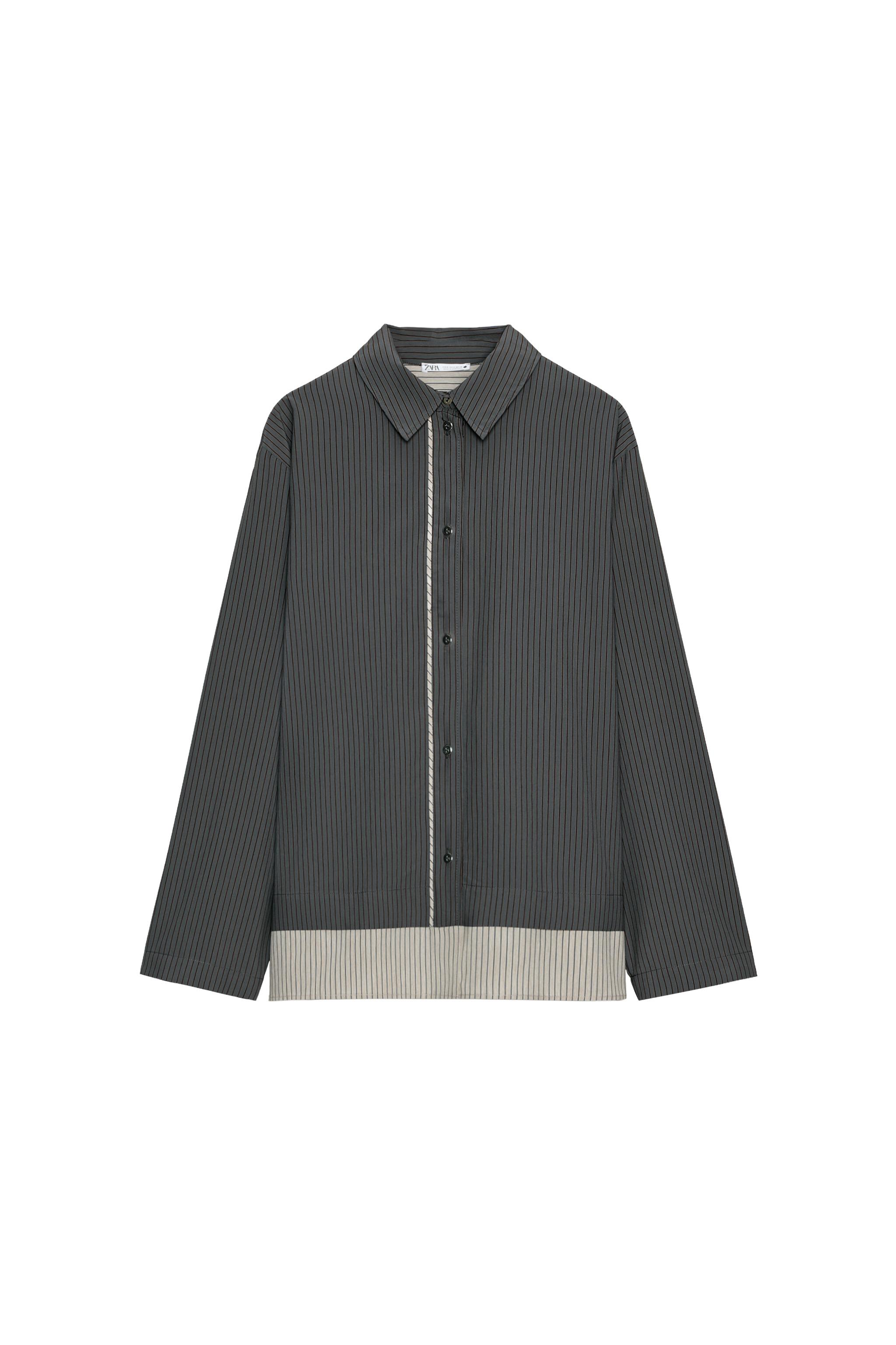 CONTRAST STRIPED VISCOSE BLEND SHIRT