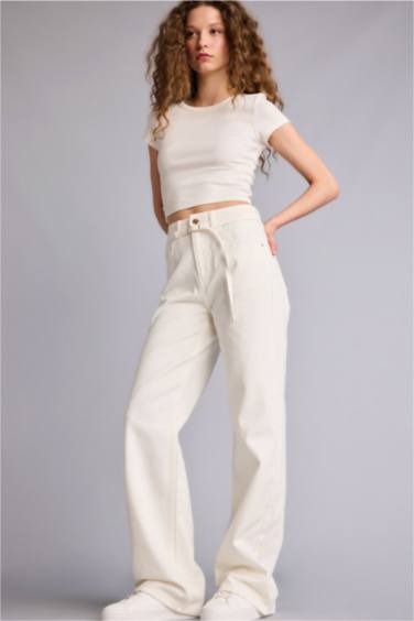 Straıght Wıde Yüksek Bel Uzun Jean Pantolon