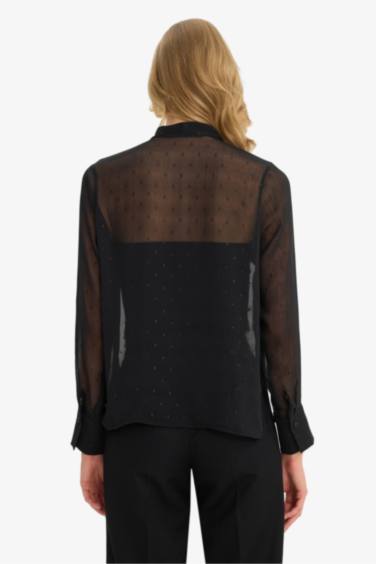 Regular Fit Şifon Puantiyeli Uzun Kollu Bluz