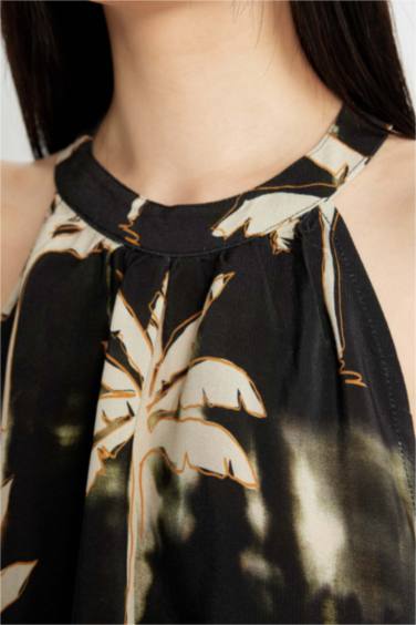 Regular Fit Halter Yaka Desenli Maroken Kolsuz Bluz