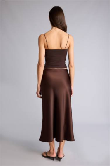 Defacto A kesim saten etek, temiz hatlar ve minimal detaylarıyla modern bir klasikin simgesi. Gövdeye oturan kesimiyle her vücut tipine uygun olurken, özellikle uzun gövdeli tipler için idealdir; dengeli bir boyut sunarak estetik bir dikkat çekiciliği sağlar. Yazın açık renkli bluzlarla veya kışın kalın yün kazaklarla kombinlenebilir. Beyaz tisörtle ve yüksek bel jeans ile gündelik bir görünüm elde edebilirsin; aynı zamanda siyah deri kemer ve beyaz sneaker ile tamamlayarak ofis-sonrasi bulusmalara da uygun hale getirebilirsin. Koyu kahve tonu, hem yazın hafif bir ışık almasıyla hem de sonbaharda daha yoğun bir atmosfer yaratması açısından çok esnek bir seçim. Eteğin süzülme özelliği sayesinde giyildiği anda rahatlık hissi verir; iç katman olarak da kullanılabilir. Kuruturken asılı bırakmak, dokusunu korumak açısından en iyi yöntemdir.