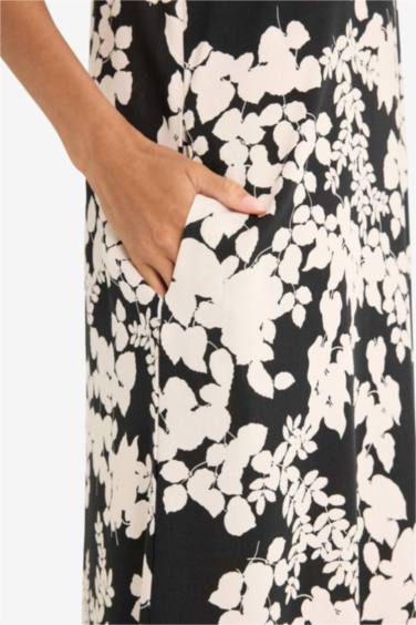 Halter Yaka Çiçek Desenli Cepli Kolsuz Midi Yazlık Elbise