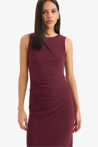 Bodycon Vücudu Saran Yuvarlak Yaka Tül Kolsuz Midi Elbise... | Oneri