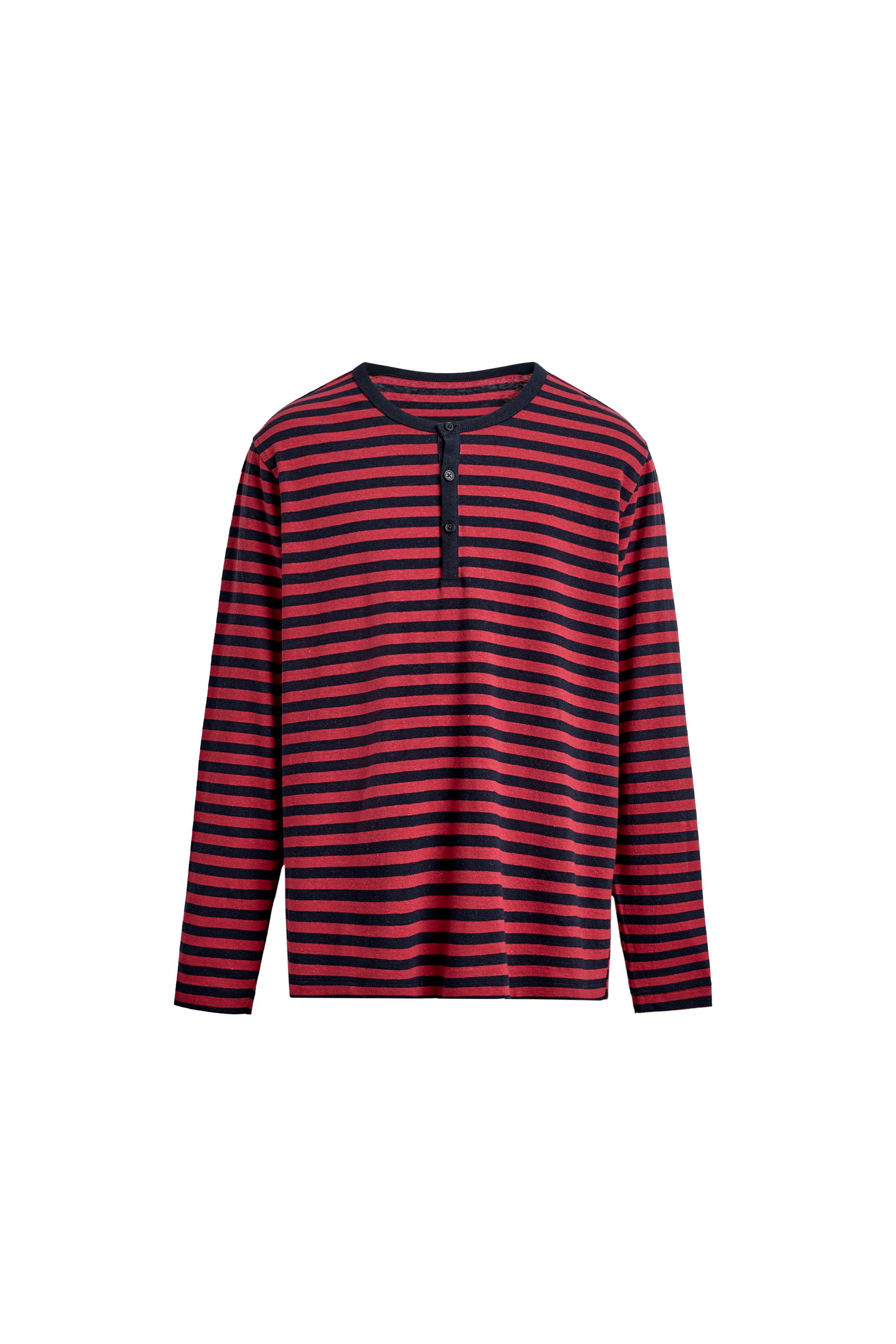 ÇİZGİLİ KETEN VE PAMUKLU DÜĞMELİ YAKA T-SHIRT