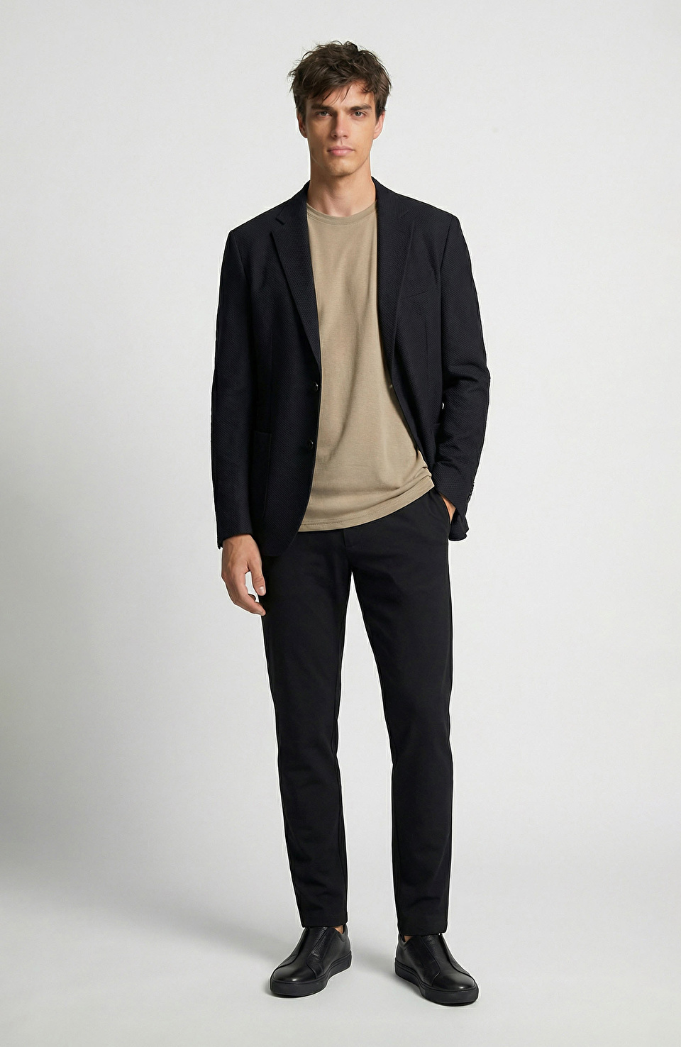 Bej triko + siyah geniş paça = rahat ama keskin bir dengenin sırrı