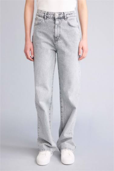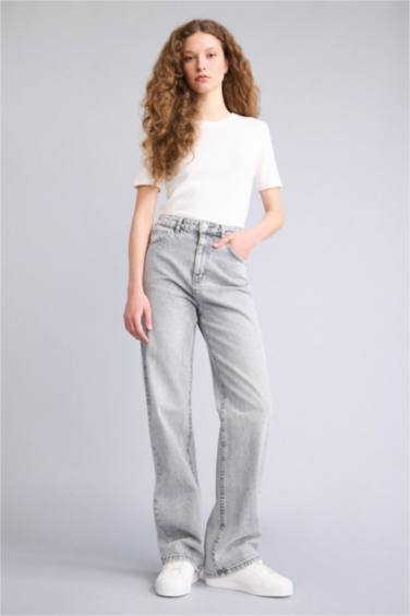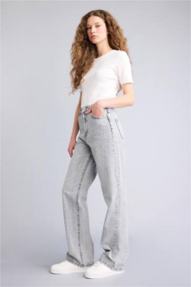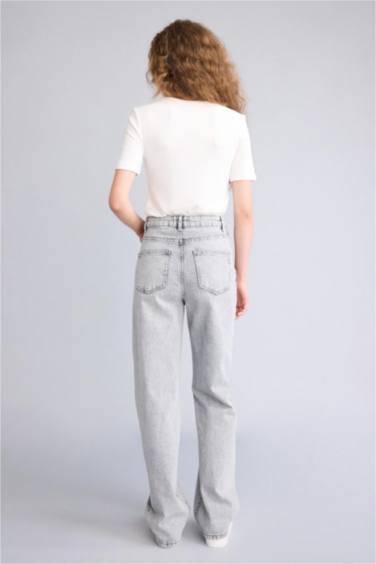 Straıght Wıde Yüksek Bel Uzun Jean Yıkamalı Pantolon