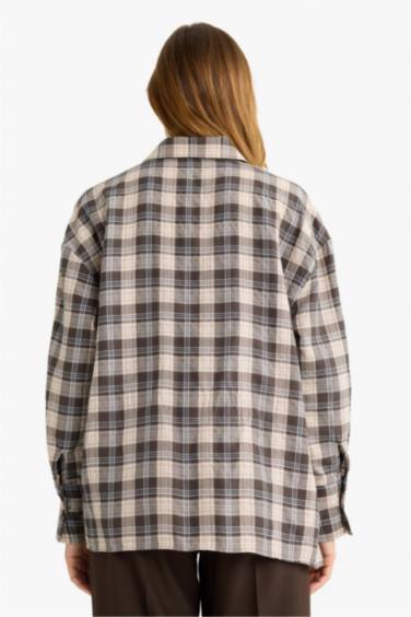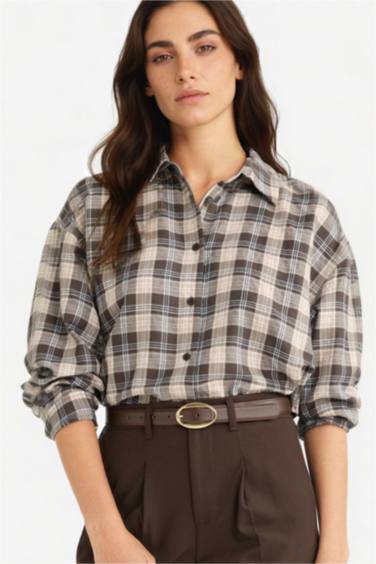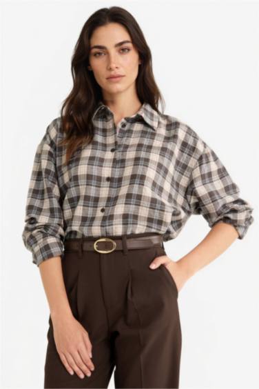 Oversize Geniş Kalıp Kareli Flanel Uzun Kollu Gömlek