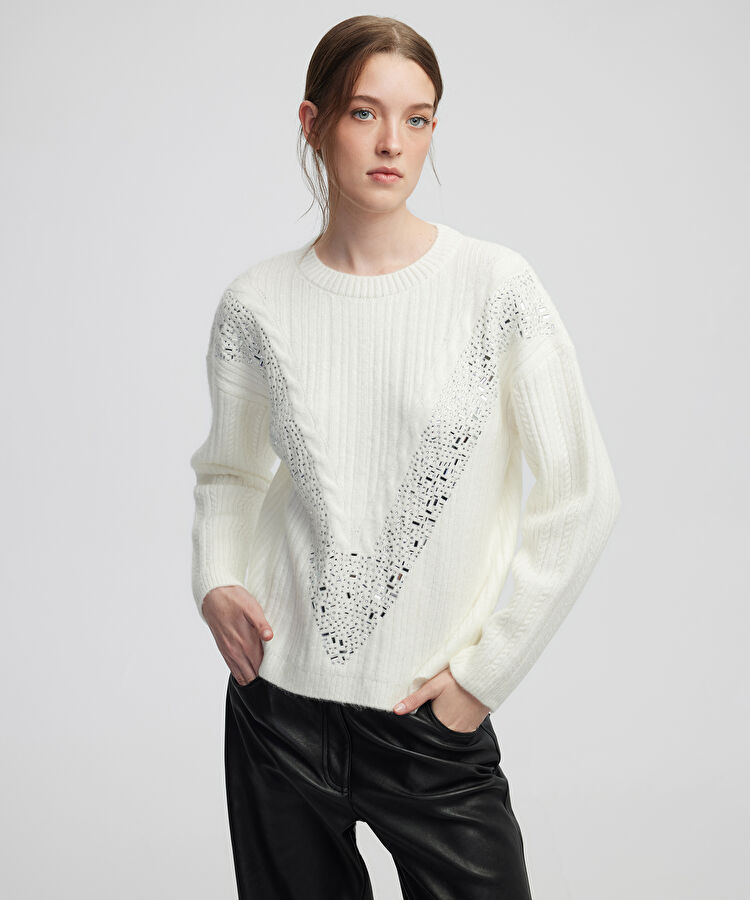 Hotfix baskılı saç örgülü triko