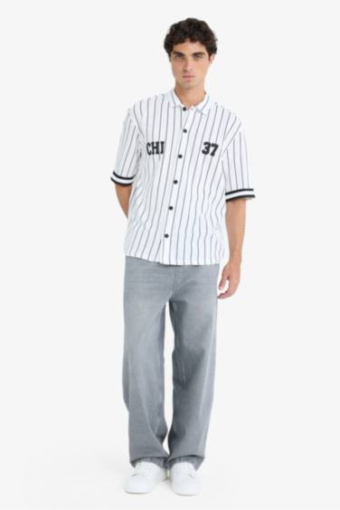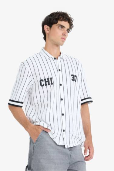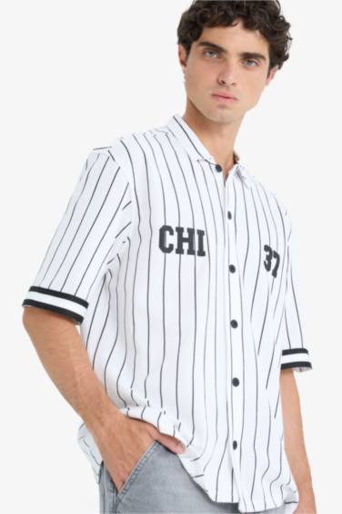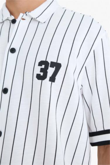 Relax Fıt Polo Yaka Baskılı Kısa Kollu Gömlek