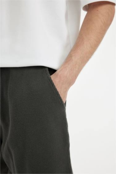 %100 Pamuk Relax Fit Petek Dokulu Cepli Bermuda Şort