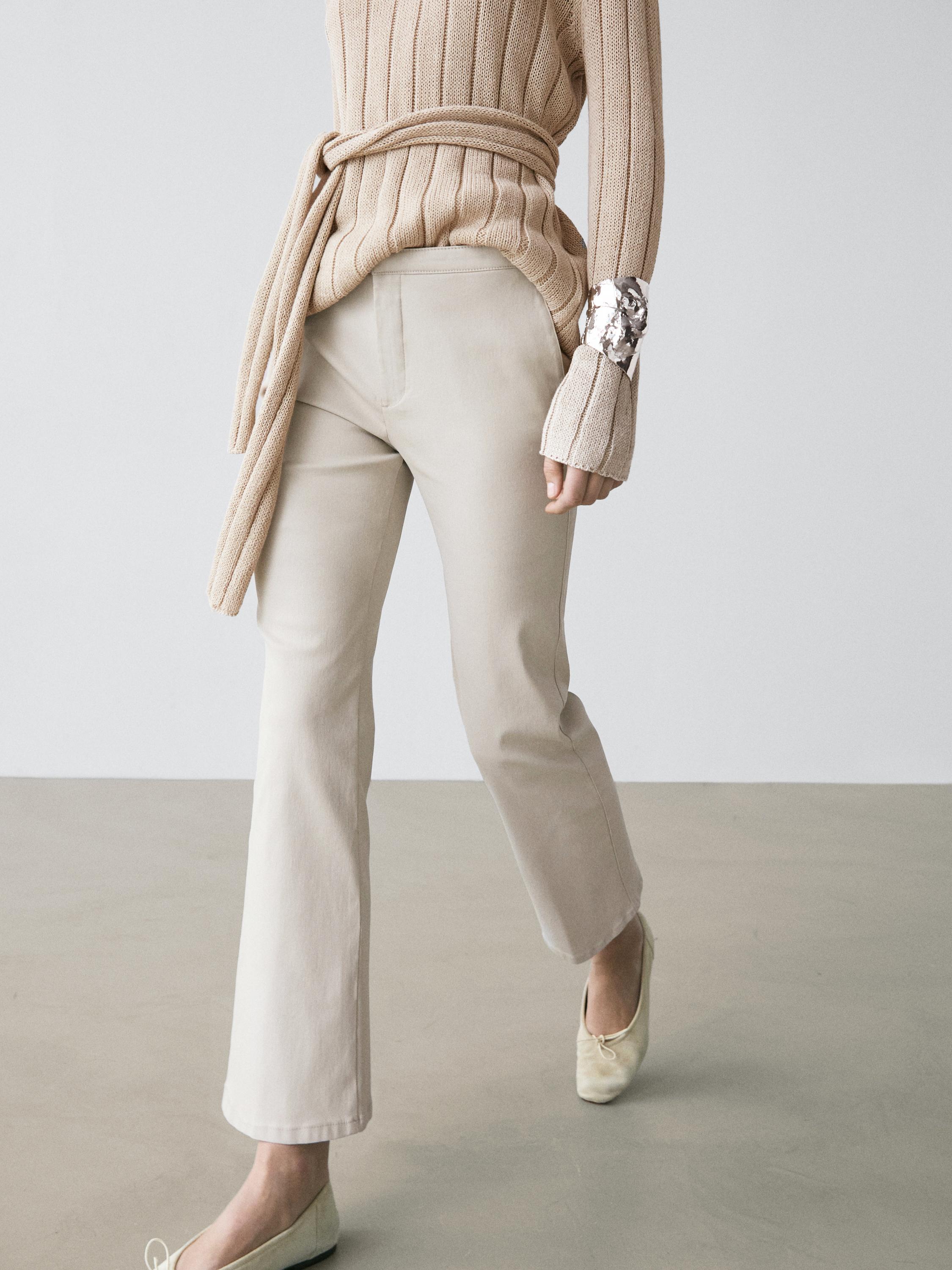 Bu çan paça pantolon, temiz hatlar ve dengeli ölçülerle minimalist tarzın en iyi örneğinden biri. Orta bel yapısı, vücut hatlarını doğal bir şekilde vurgularken, hafifçe genişletilmiş ayağı ise hareketliliği koruyor. Uzun gövdeli tipler için idealdir; bu model uzunluğu dengeleyerek daha dengeli bir görünüm sunar. Beyaz tisörtle ve yüksek bel jeans ile kombinleme, rahat ama şık bir günlük kıyafet oluştururken, siyah bluz ve deri ayakkabıyla ofis-sonrası bir buluşmada da etkileyici olur. Beige ve cream tonları, sonbaharın ılık günlerinde ışık tutan bir temel oluştururken, siyah renk ise karanlık mevsimlerde daha soyut bir hava yaratır. Aksesuar olarak siyah deri kemer ve beyaz sneaker ile tamamlayabilirsin; bu detaylar hem estetik hem de fonksiyonel açıdan dengeli bir eklenti sağlar. Düşük bakım gereksinimi olan bu pantolon, katlanmadan asılmalı ve iç katman olarak da kullanılabilir. Zamanla şekli bozulmaması için dikkatli yıkama ve kurutma önerilir.