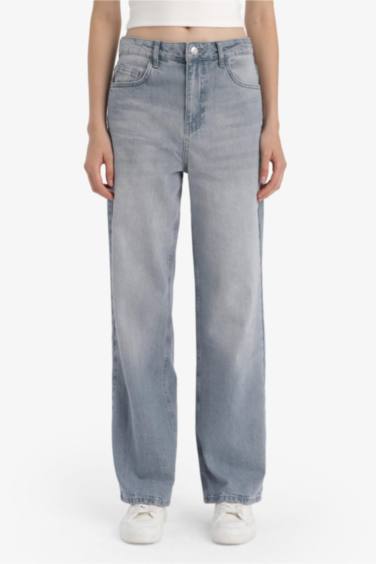 90's Wide Leg Yüksek Bel Uzun Jean Yıkamalı Pantolon