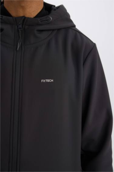 Su İtici Regular Fit Kapüşonlu İçi Polarlı Fermuarlı Softshell Yağmurluk