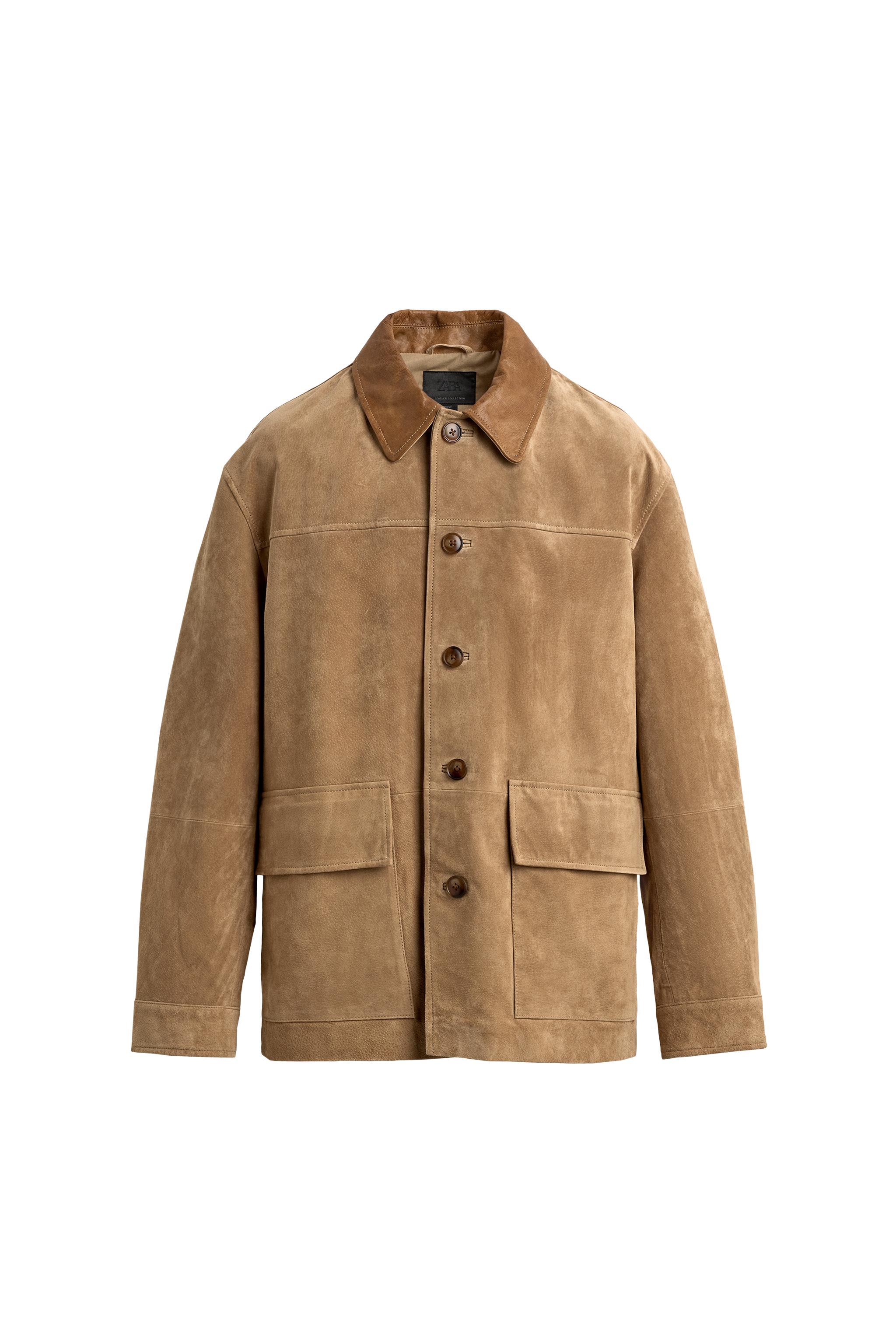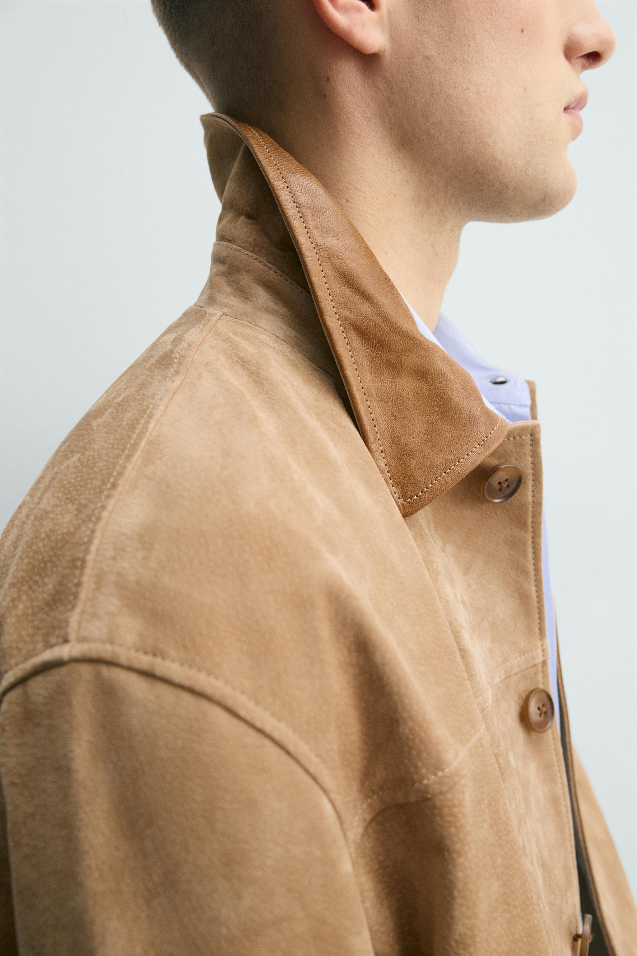 CONTRAST COLLAR LEATHER SPLIT SUEDE JACKET