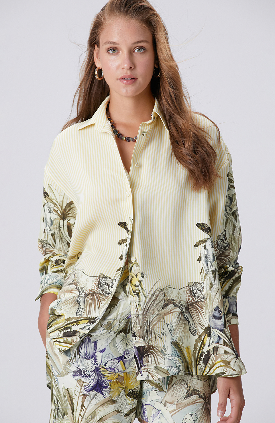 Sarı yeşil gömlek, her günün klasik kombinlerine canlı bir dokunuş ekleyen dikkat çekici bir parca. Uzun govdeli tipler icin idealdir; gomlegin yuvarlak ve bol kesimi vucudun dengesini saglar. Bahar ve yaz mevsimlerinde ofis-sonrasi bulusmalarda veya gece yuruyuslerinde cok uygun. Beyaz tisortle ve yuksek bel jean ile kombinleme, rahat ama stilli bir gozukum saglar. Ayni zamanda kahverengi canta ve siyah deri kemerle de cok guzel olur. Tavsiye edilen renk uyumu, beyaz ve yesil tonlarin bir araya gelmesidir. Gomlek, katlanmadan asmali ve icerde ceket altina da kullanilabilir. Her zaman bir ust giysinin temelini olusturabilir.