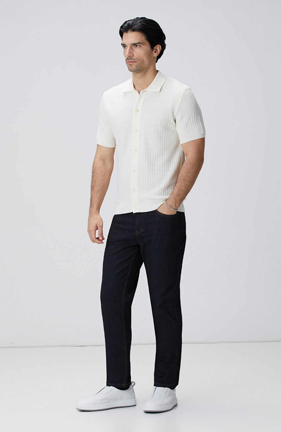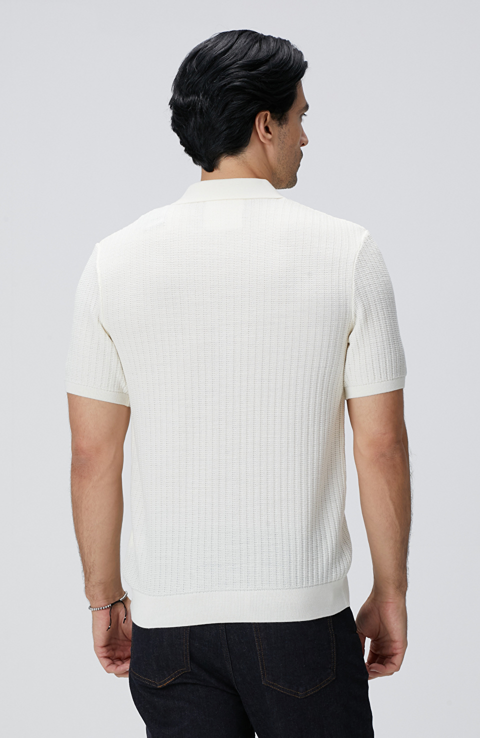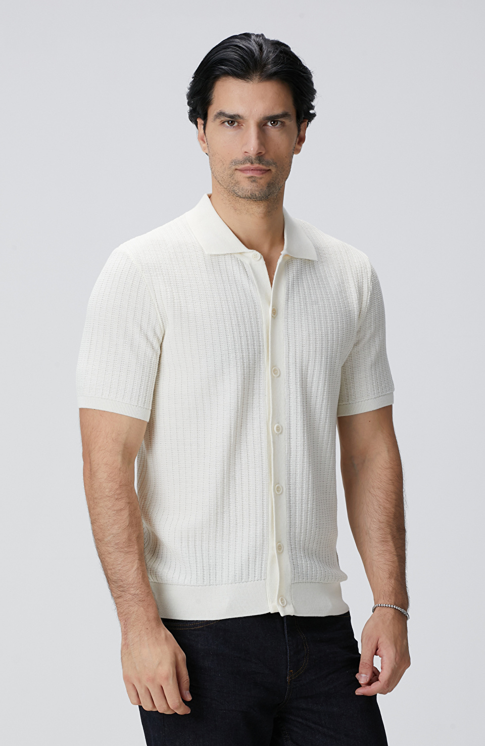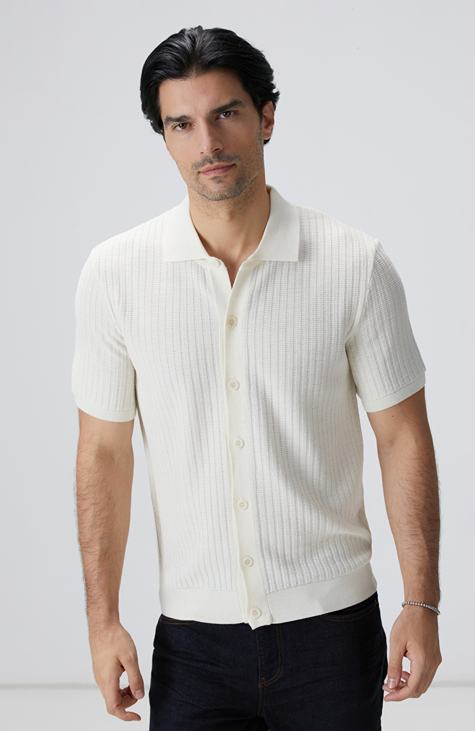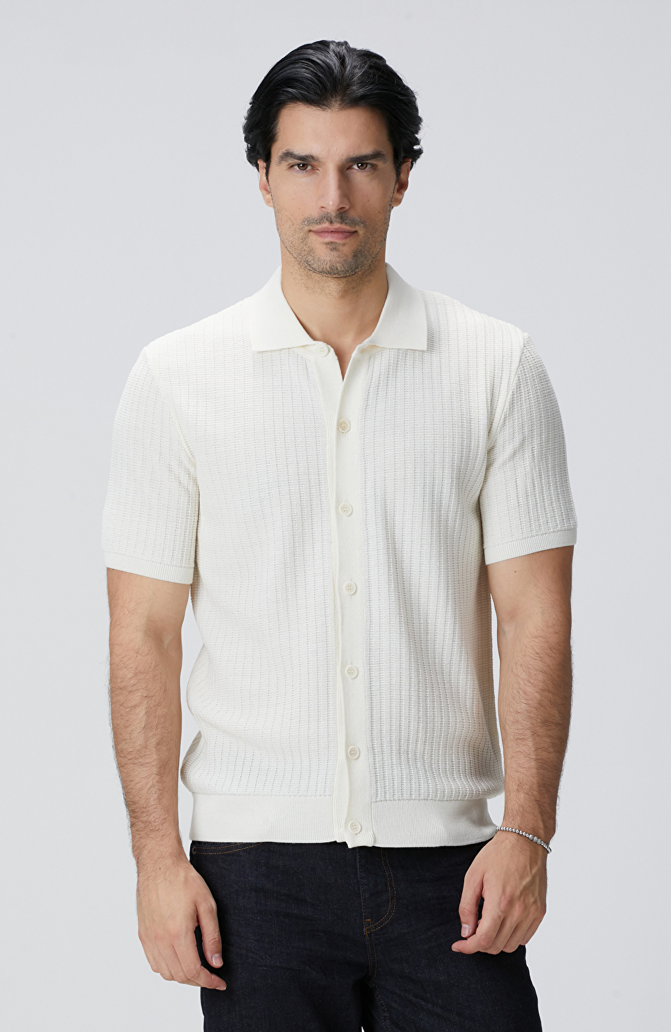 Kırık Beyaz Yün Karışımlı Triko Gömlek
