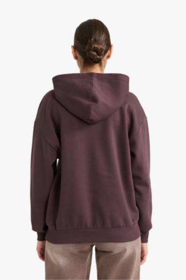 Relax Fit Kapüşonlu Baskılı Kalın Sweatshirt