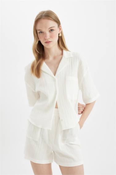 Regular Fıt Polo Yaka Müslin Kısa Kollu Gömlek