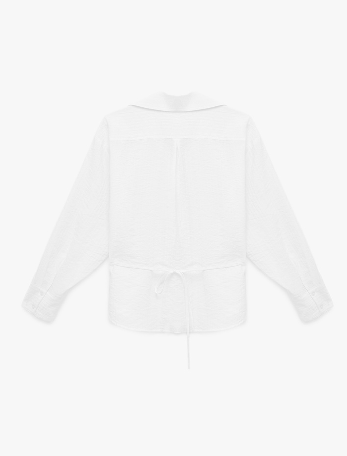 Uzun Kollu Dokulu Oversize Gömlek