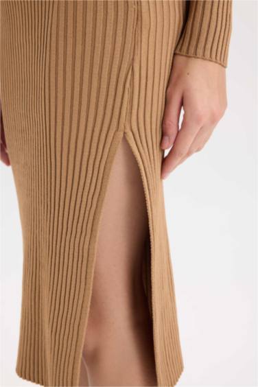 Fitted Vücudu Saran Yarım Balıkçı Yaka Basic Düz Uzun Kollu Triko Elbise