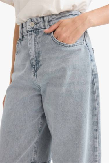 %100 Pamuk Baggy Fıt Yüksek Bel Uzun Jean Pantolon