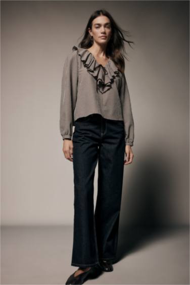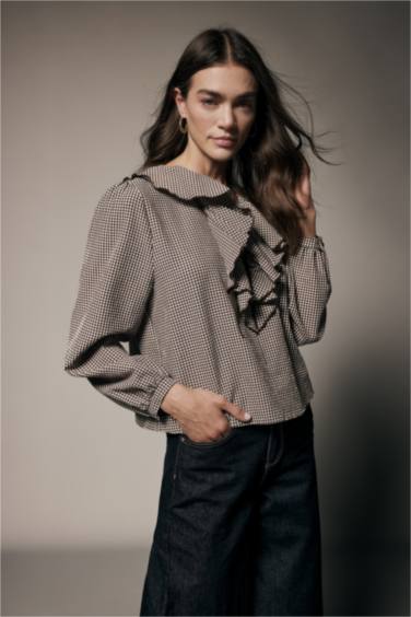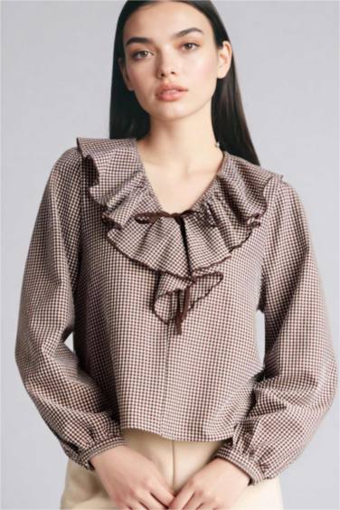 Kareli Gofre Dokulu Bluz