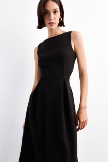 Bisiklet Yaka Kolsuz Midi Elbise