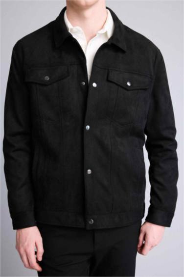 Slım Fıt Polo Yaka Süet Mont