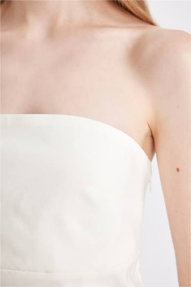 Straplez Bengalin Beyaz Mini Elbise