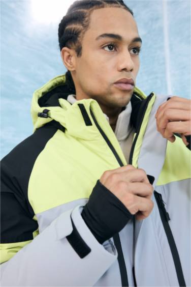 Su İtici Regular Fit Kapüşonlu Fermuarlı Kayak Montu