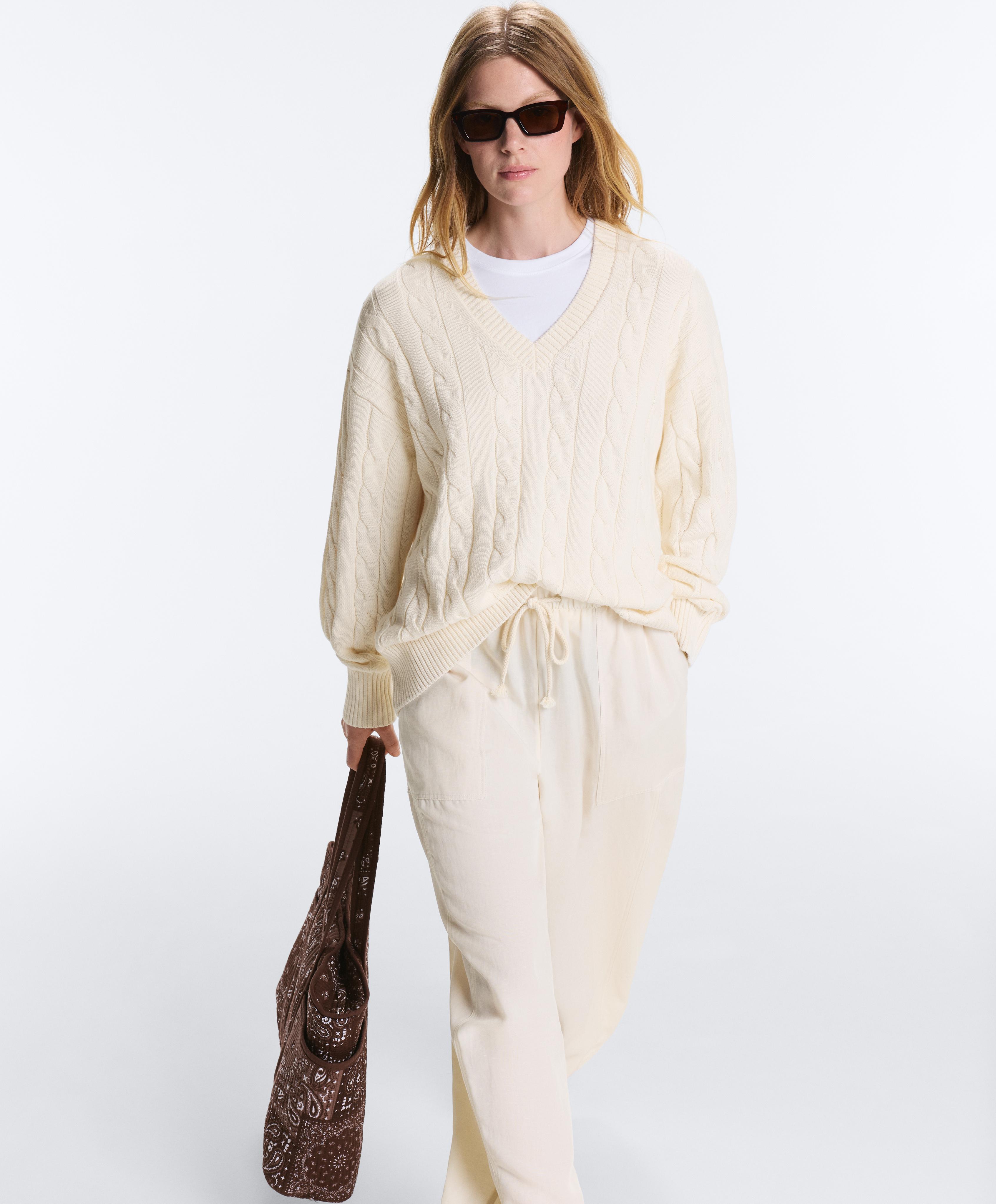 V yaka saç örgü %100 pamuklu kazak