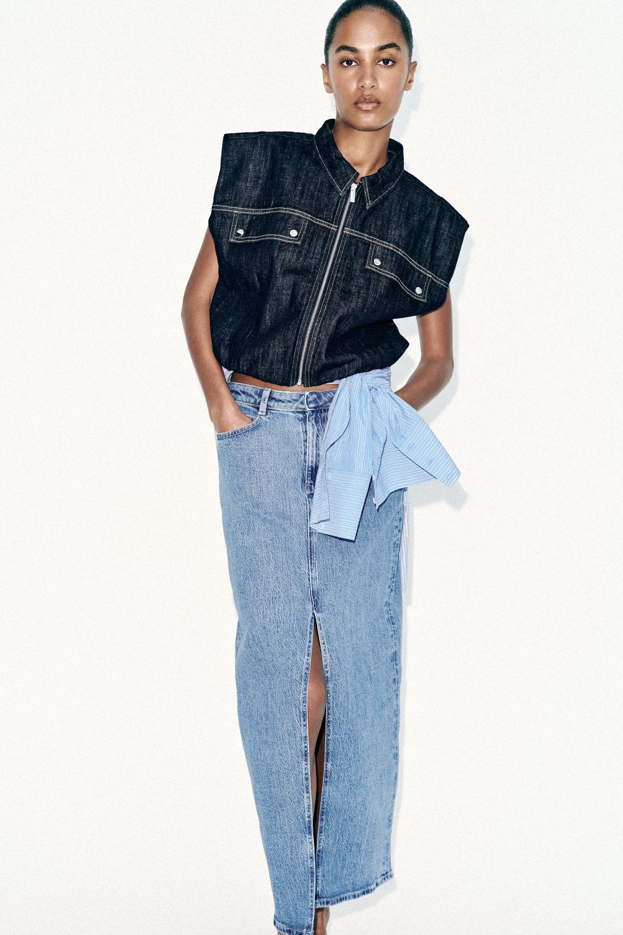 Z1975 YIRTMAÇLI DENİM MİDİ ETEK