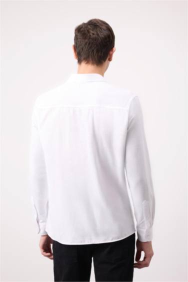 Modern Fit Polo Yaka Basic Düz Uzun Kollu Beyaz Gömlek