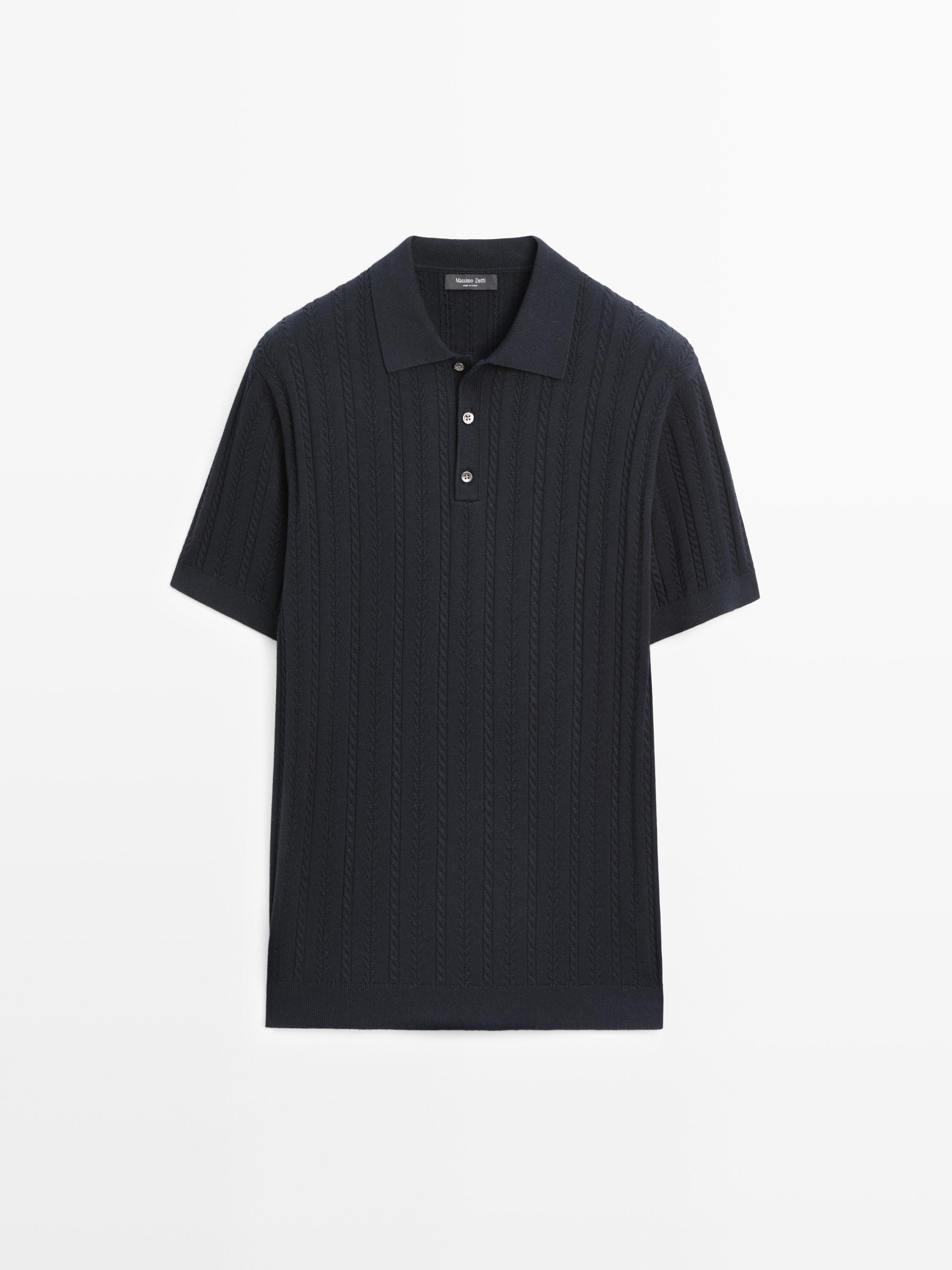Pamuk karışımlı saç örgülü polo yaka kazak