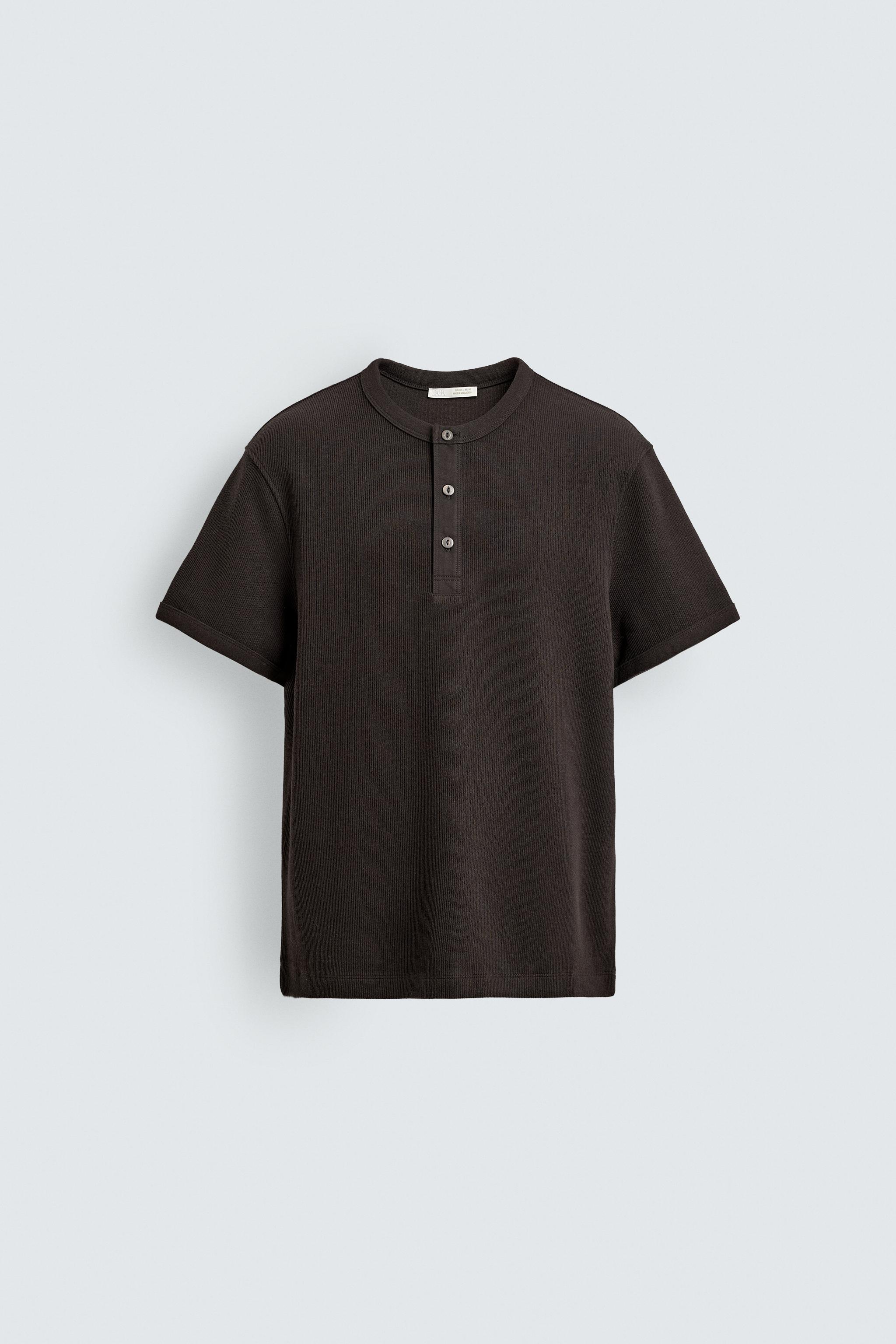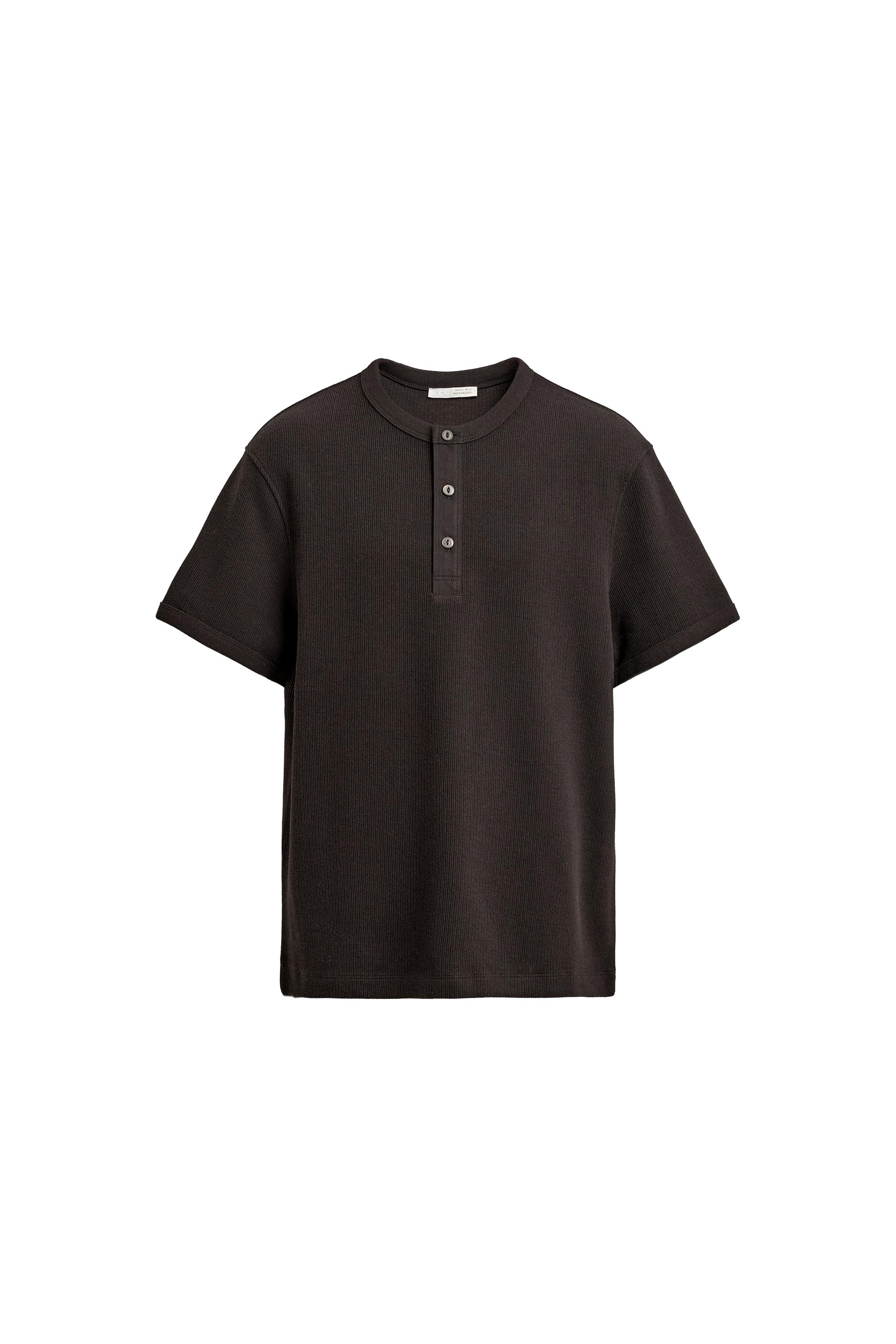 TEXTURED HENLEY COLLAR T-SHIRT