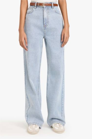 90's Wıde Leg Yüksek Bel Düz Paça Uzun Jean Kar Yıkamalı Pantolon
