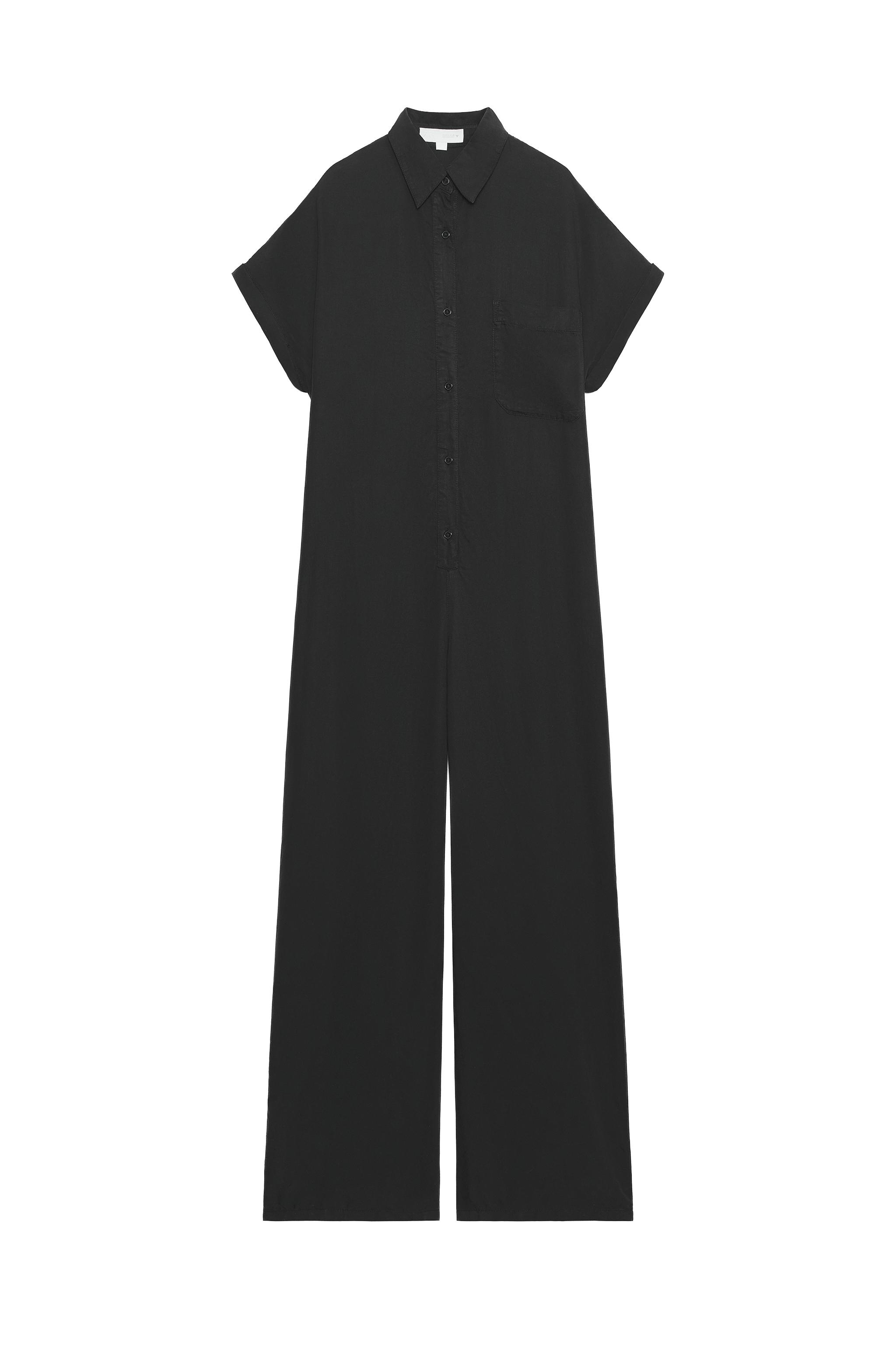 Sade ve zarif bir dengede, klasik detaylarla modern bir şıklık sunan bu kisa kollu dokumlu tulum, kapsul gardirop için ideal bir parca. Temiz hattı ve rahat kesimiyle her vücut tipine uygun; uzun gövdeli tipler için özellikle dengeli bir görünüm sağlar. Yazın açık havada veya sonbaharın serin günlerinde, beyaz tisortle ve yüksek bel jeans ile kombinleme yaparak günlük bir konforlu look oluşturabilirsin. Aynı zamanda ofis-sonrasi bulusmalarda veya akşam yemeğinde, siyah deri kemer ve beyaz sneaker ile daha şık bir hale getirebilirsin. Koyu siyah rengi sayesinde birçok renkle uyum sağlar ve iç katman olarak da kullanılabilir. Kurutma makinesinden uzak tutarak doğal hava kurumasını tercih edersen, dokuma kalitesi uzun süre korunur.
