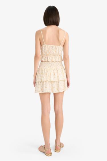 A Kesim Çiçekli Normal Bel Krinkıl Viskon Mini Etek