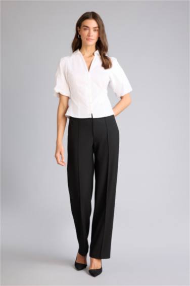Wıde Leg Normal Bel Düz Paça Pantolon