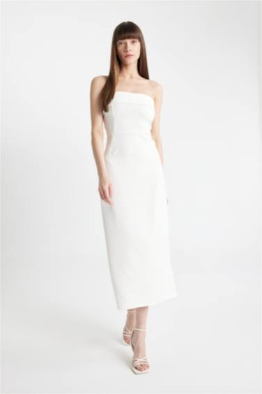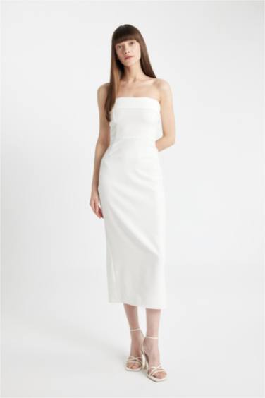 Bodycon Vücudu Saran Straplez Maxi Abiye Elbise