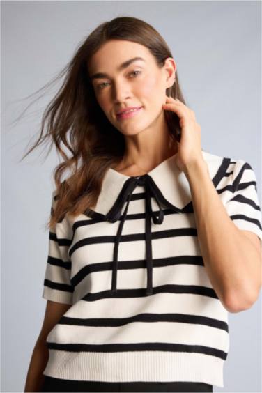 Beyaz ve siyah renk seçenekleriyle temiz bir estetik sunan bu crop büyük yaka kazak, minimalist tarzın en iyi örneğinden biri. Uzun gövdeli tipler için idealdir çünkü vücut hatlarını net şekilde ortaya koyarken aynı zamanda dengeli bir görünüm sağlar. Yazın ofis-sonrası buluşmalarda veya sonbahar aksam yürüyüşlerinde, bol kalıp bir ceketin altına giyilebilir. Beyaz tisörtle ve yüksek bel jeans ile kombinleme yaparsanız, rahat ama şık bir günlük görünüm elde edersiniz. Siyah deri kemer ve beyaz sneaker ile tamamlayarak daha modern bir hale getirebilirsiniz. Katlanmadan asmalı, iç katman olarak da kullanılabilir. Sadece temiz tutulmasıyla uzun ömürlü olur.