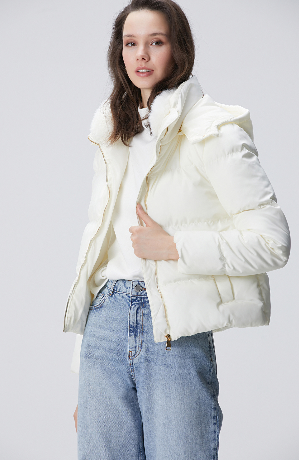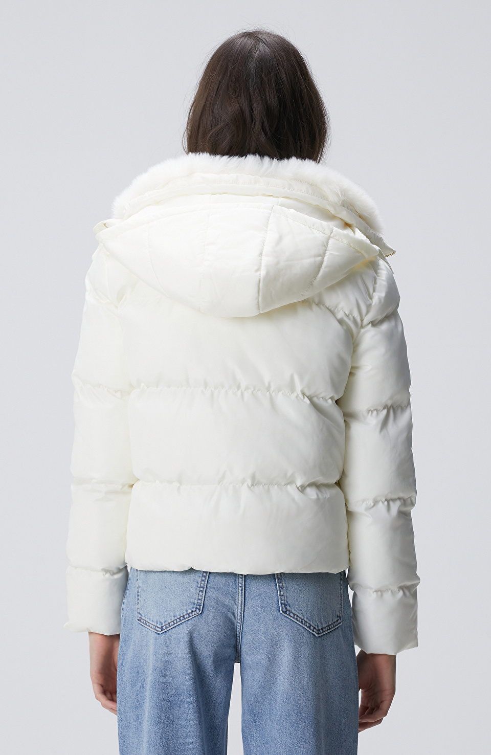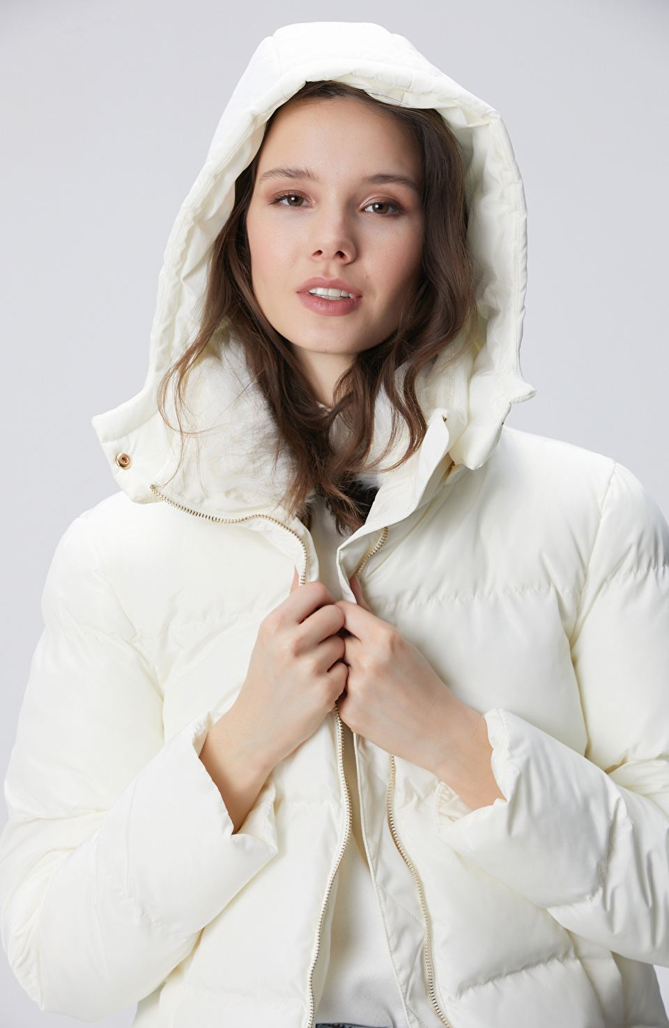 Kırık Beyaz Kapüşonlu Kapitone Mont