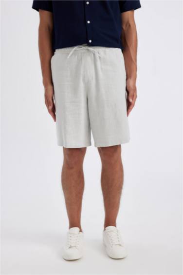 -%10Relax Fit Keten Karışımlı Yazlık Bermuda Şort