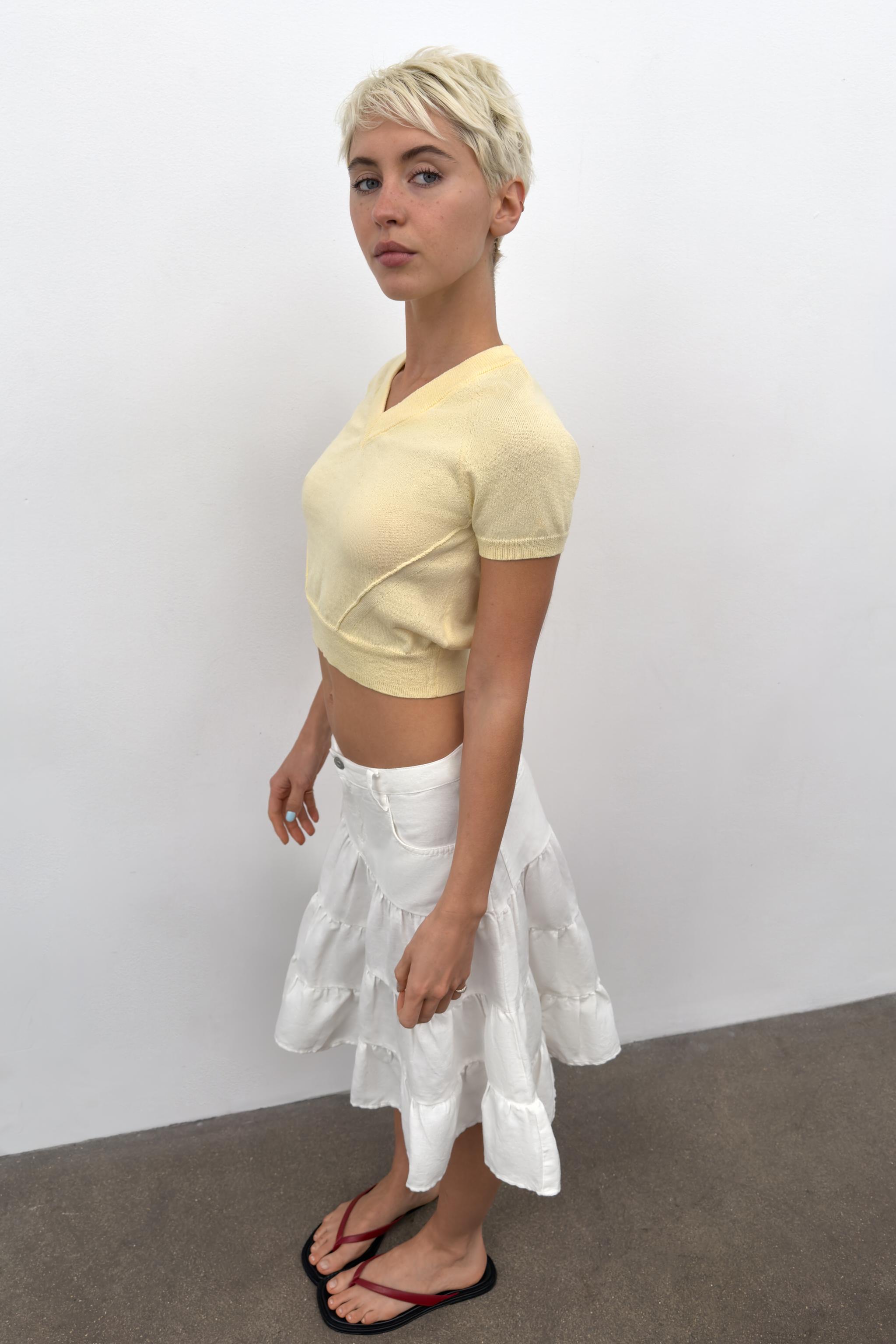 SHORT SLEEVE V-NECK KNIT TOP
