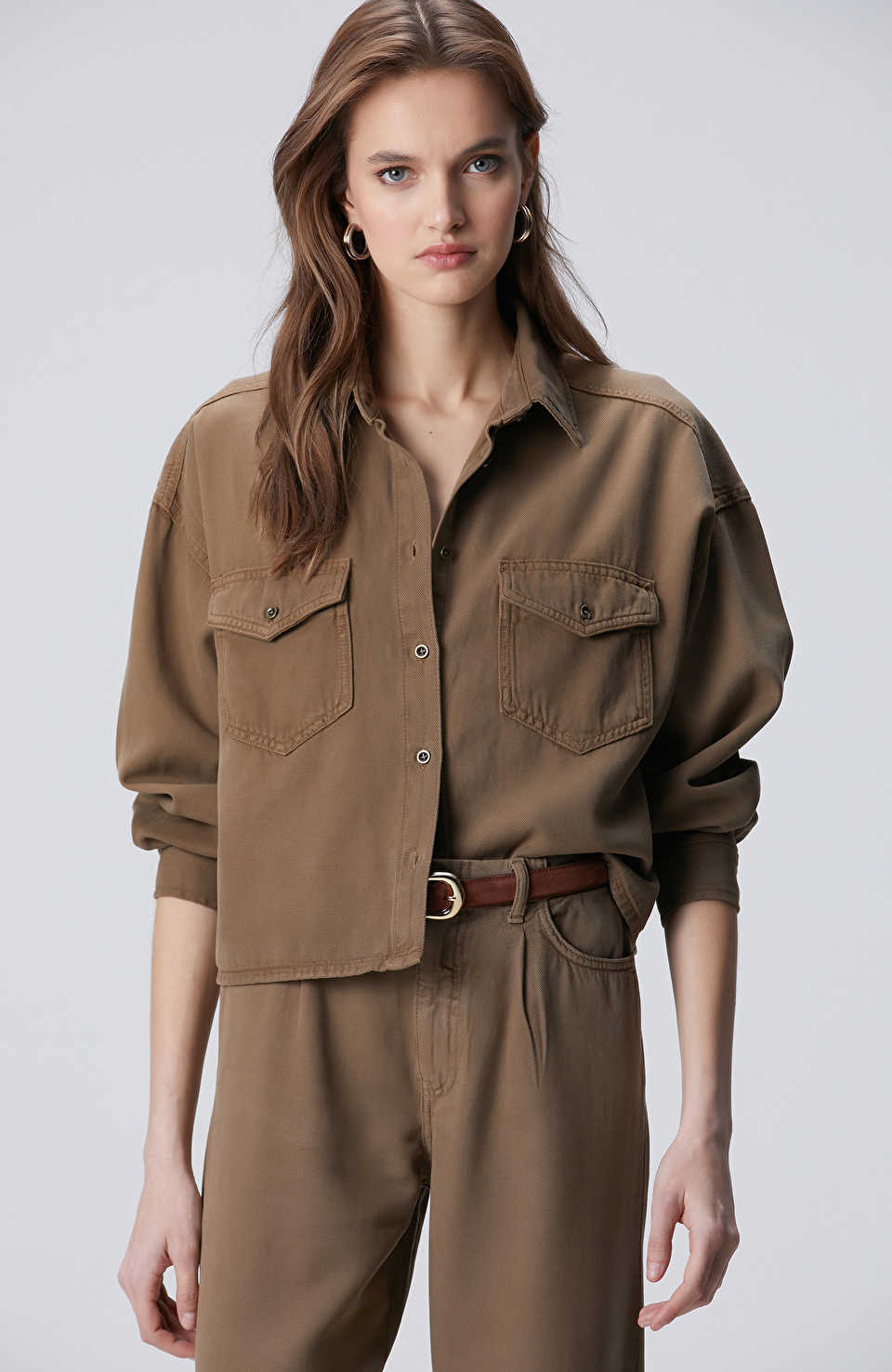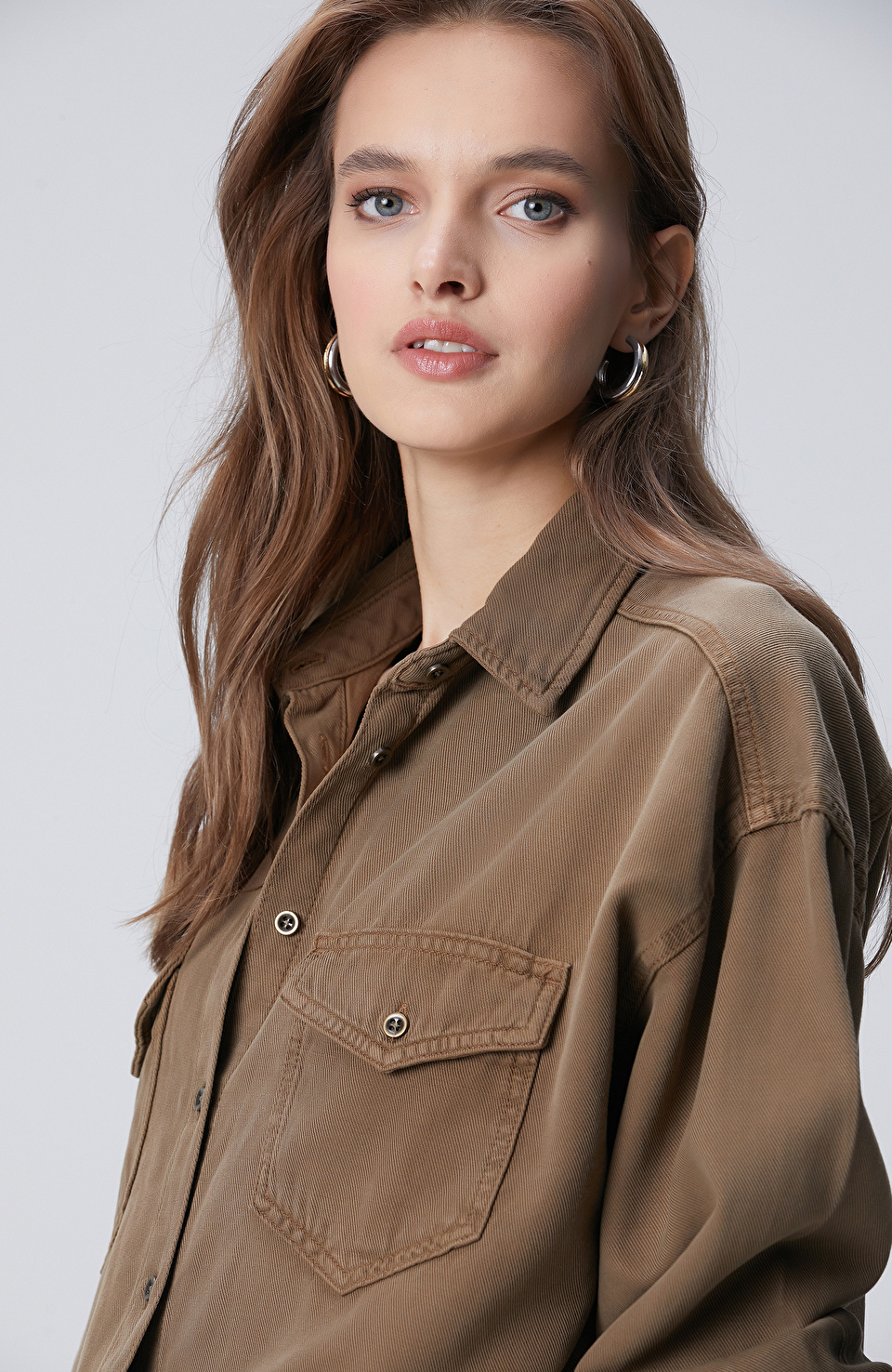Vizon Tencel Karışımlı Denim Gömlek