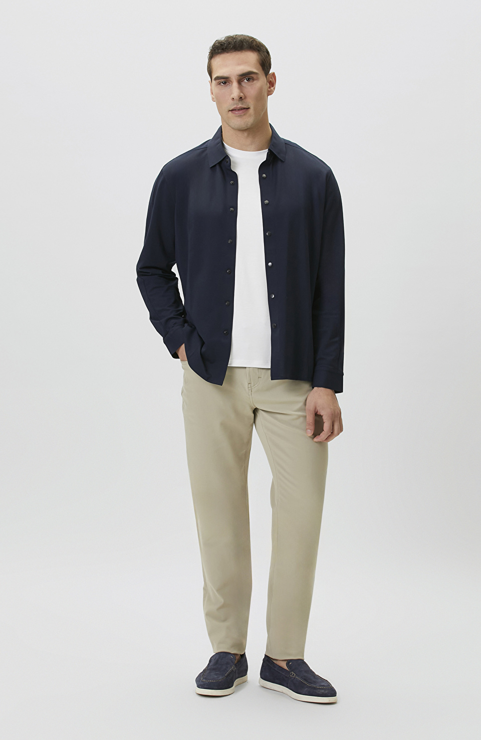 Bej kemer içi lastikli örme pantolon, temiz hatlar ve hafif esneklikle dikkat çeken bir parçadır. Minimalist tarzda giyim arayanlar için idealdir; sadece birkaç parça ile etkili bir görünüm yaratabilirsiniz. Uzun gövdeli tipler için idealdir çünkü vücut hatlarını yumuşakça vurgular. Klasik bir beyaz tişörtle ve yüksek bel jeans ile kombinleme yaparsanız, ofis-sonrası bir buluştan çok daha şık bir hale gelir. Aynı zamanda, açık mavi bir bluzla ve düz ayakkabılarla da rahatça geceye uygun bir kombine edebilirsiniz. Siyah deri kemer ve beyaz sneaker ile tamamlayarak modern bir dokunuş ekleyebilirsiniz. Düşük bakım gerektiren bu pantolon, katlanmadan asılı tutulduğunda kalıcı bir formunu korur. İç katman olarak da kullanılabilir; üzerine uzun kaban veya ceket giyerek mevsimsel değişime uygun şekilde giyebilirsiniz.