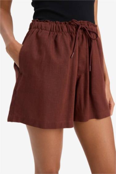Yüksek Bel Keten Karışımlı Şort