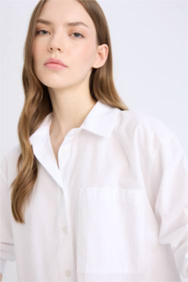 %100 Pamuk Oversıze Tek Cepli Poplin Gömlek